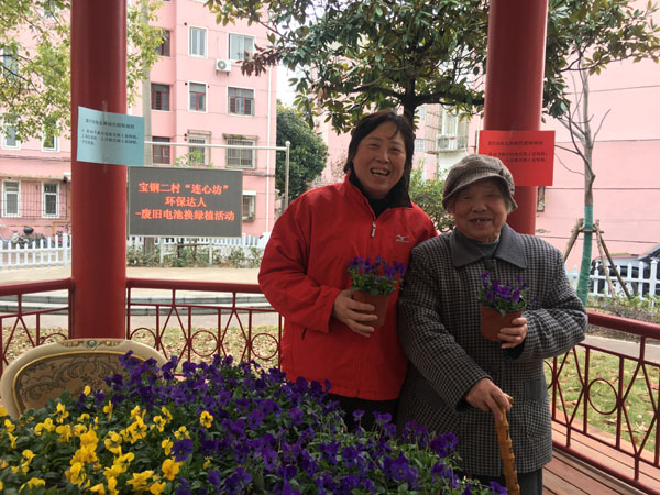 宝钢二村:废旧电池换绿植,环保理念入人心