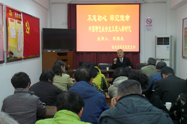 12月7日上午9:00,住友宝莲花园党支部在居委会议室开展党的十九大精神宣讲活动,主讲人为街道宣讲团的李振生老师,主题为《不忘初心 牢记使命 中国特色... [17/12/07] |