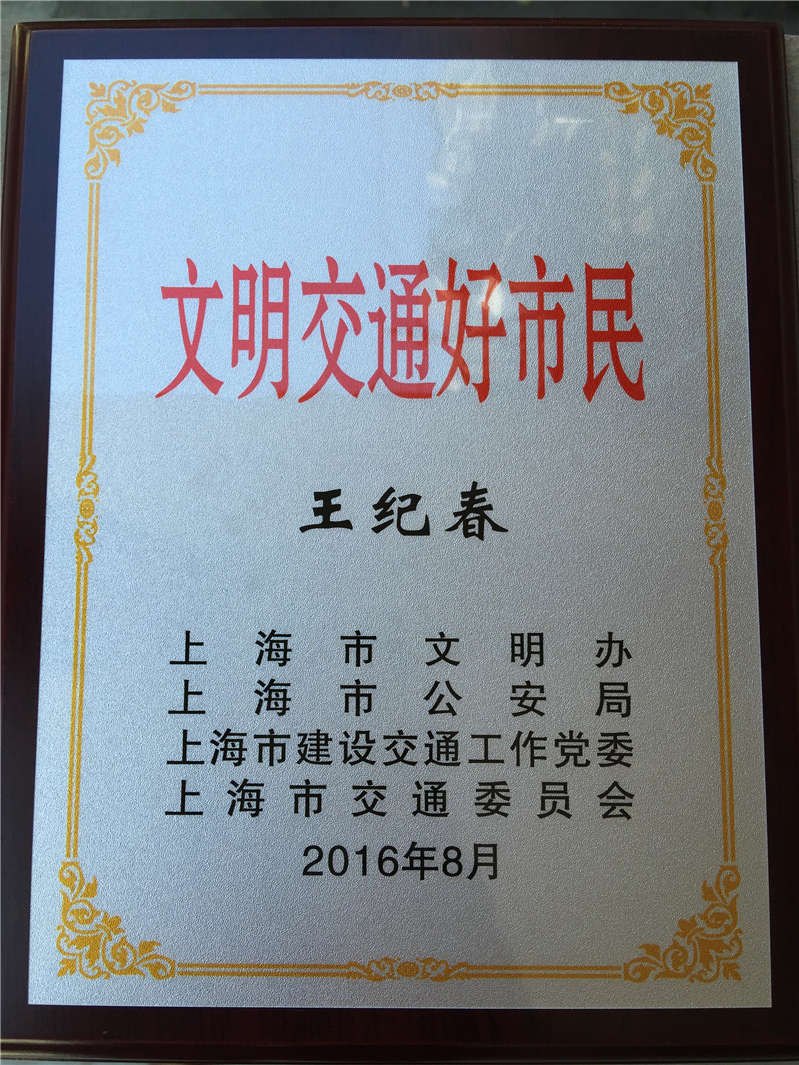 王纪春同志是宝山区友谊路街道宝钢九村居民,年逾古稀,是一名退休党员,也是小区的支委委员、党小组长和楼组长,还是一名在上海志愿者网上登记注册的文明交通志愿者。他不仅自己身体力行,在自己遵守交通规则的同时,数十年如一日地当好交通志愿者,还积极宣传文明交通,文明出行,是“文明在脚下”的宣传实践者,倍受群众好评。